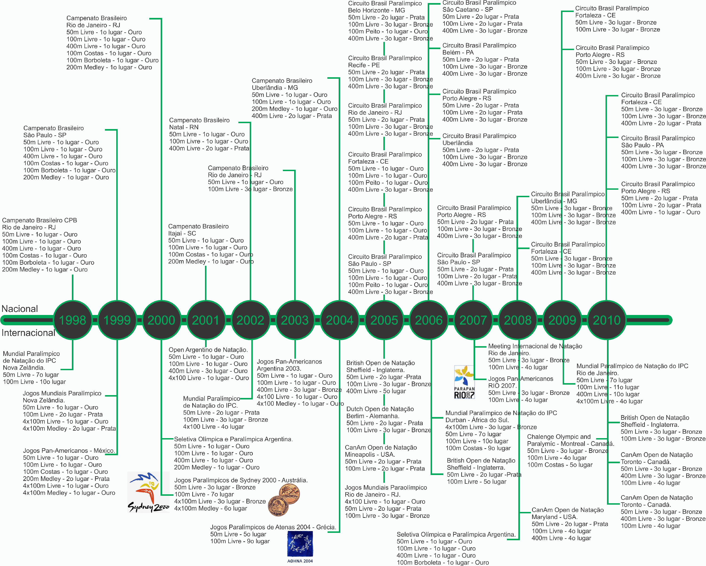 Melhor do Brasil pela categoria S10 de 1998 até 2001 só conquistou medalhas de ouro, nos 50, 100 e 400 Livre, 100 Costas, 100 Borboleta e 200 Medley pela categoria S10. Isso mesmo, nunca perdeu uma prova disputada em campeonatos brasileiros nestes 4 anos. Supremacia que ainda manteve nos 50 e 100 Livre até 2004, por mais 3 anos.